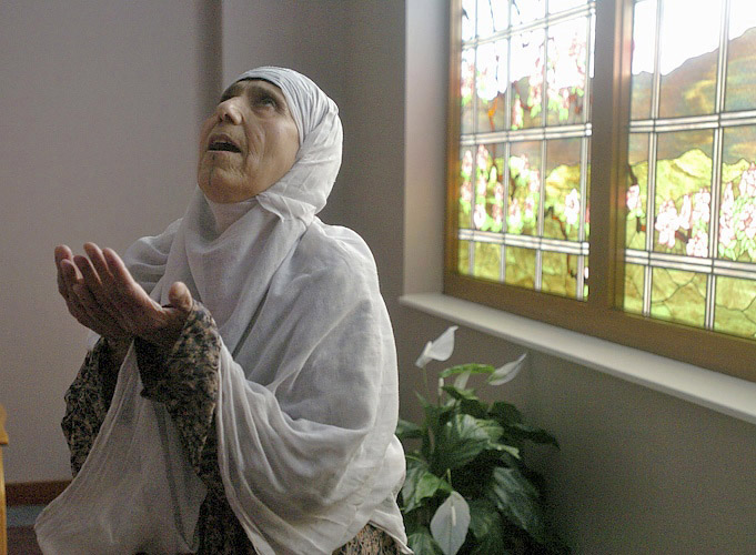 Iraqi woman prays for her grandaughter during her surgery, Shriners Hospital, Cincinnati, Ohio