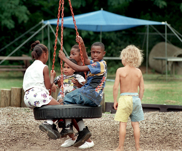 Young children dispute over a swing, Lexington, Kentucky